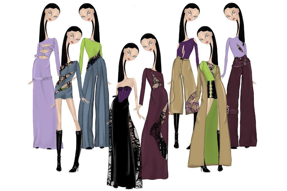 This portfolio brings together a selection of sketches and projects created during my time at Istituto di Moda Burgo. The collections presented explore different stylistic languages, combining conceptual research and textile experimentation.