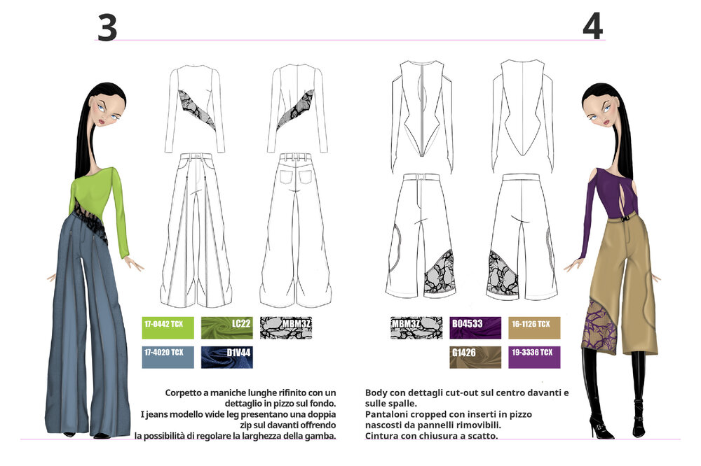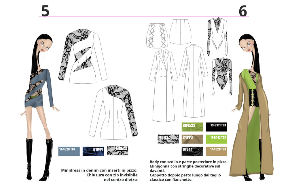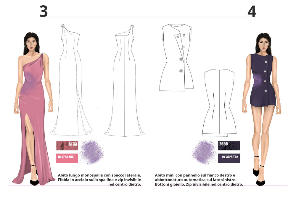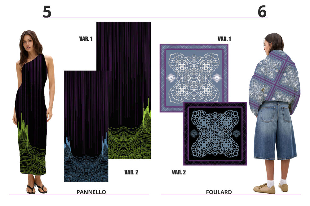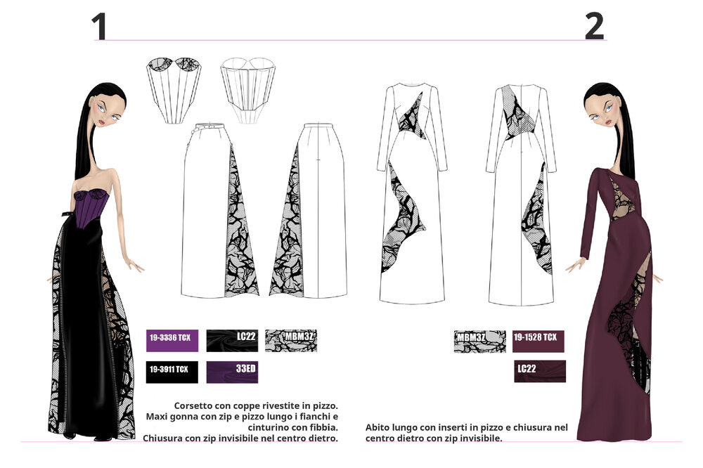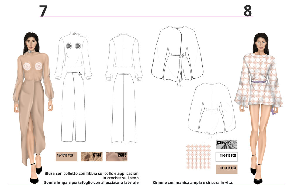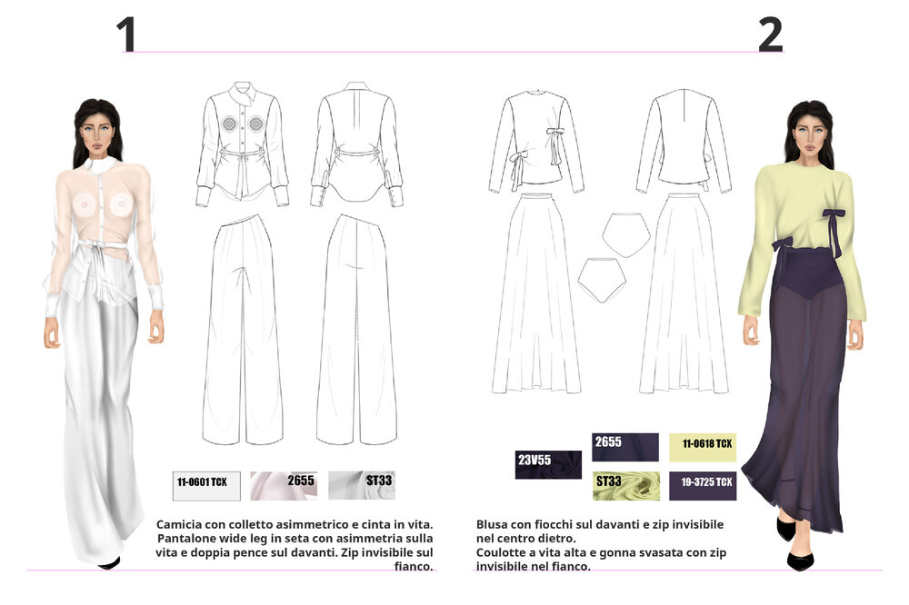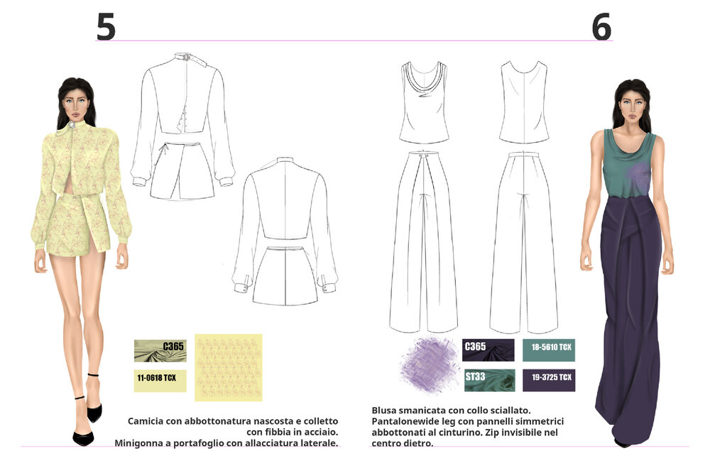 Each project is the result of careful research into trends, fabrics, and color palettes, with the aim of transforming conceptual and cultural inspirations into contemporary fashion proposals.
