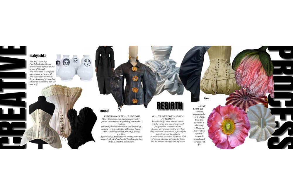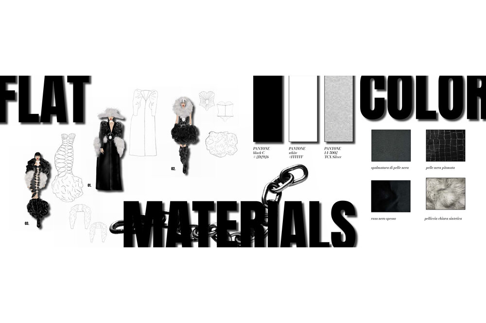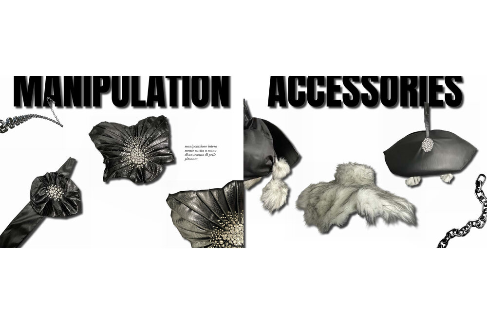 from this vision comes a collection that is a pure statement: sculptural volumes, exaggerated silohouettes, luminous surfaces that capture the gaze. to dominate black, not as an absence, but as a powerful presence.