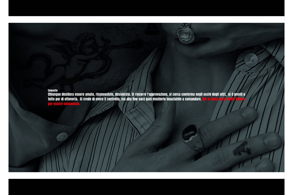 Chiunque desidera essere amato, riconosciuto, desiderato. Si rincorre l’approvazione, si cerca conferma negli occhi degli altri, si è pronti a tutto pur di ottenerla. Si crede di avere il controllo, ma alla fine sarà quel desiderio insaziabile a comandare. Chi si dona senza limiti finisce per essere consumato.