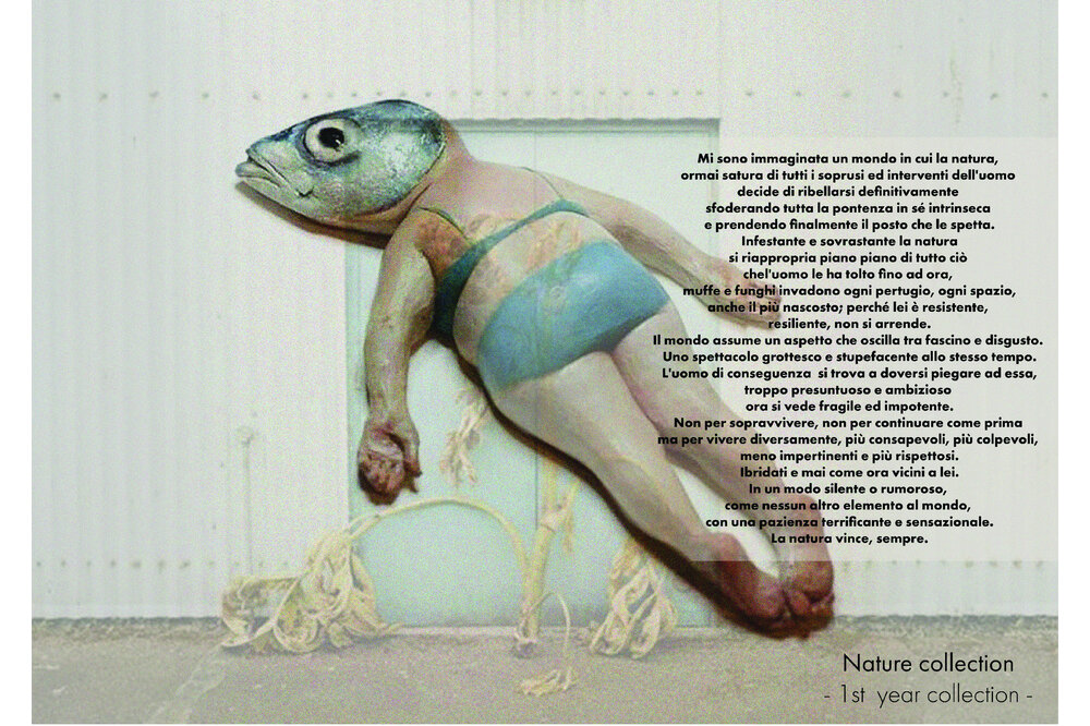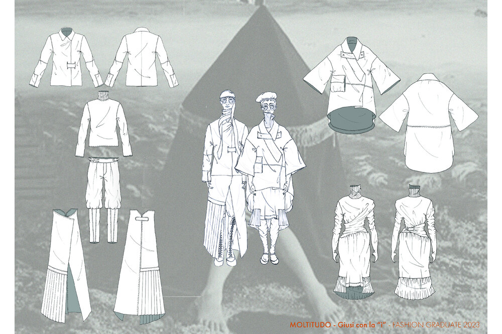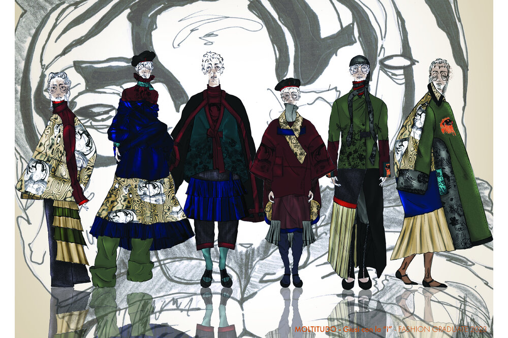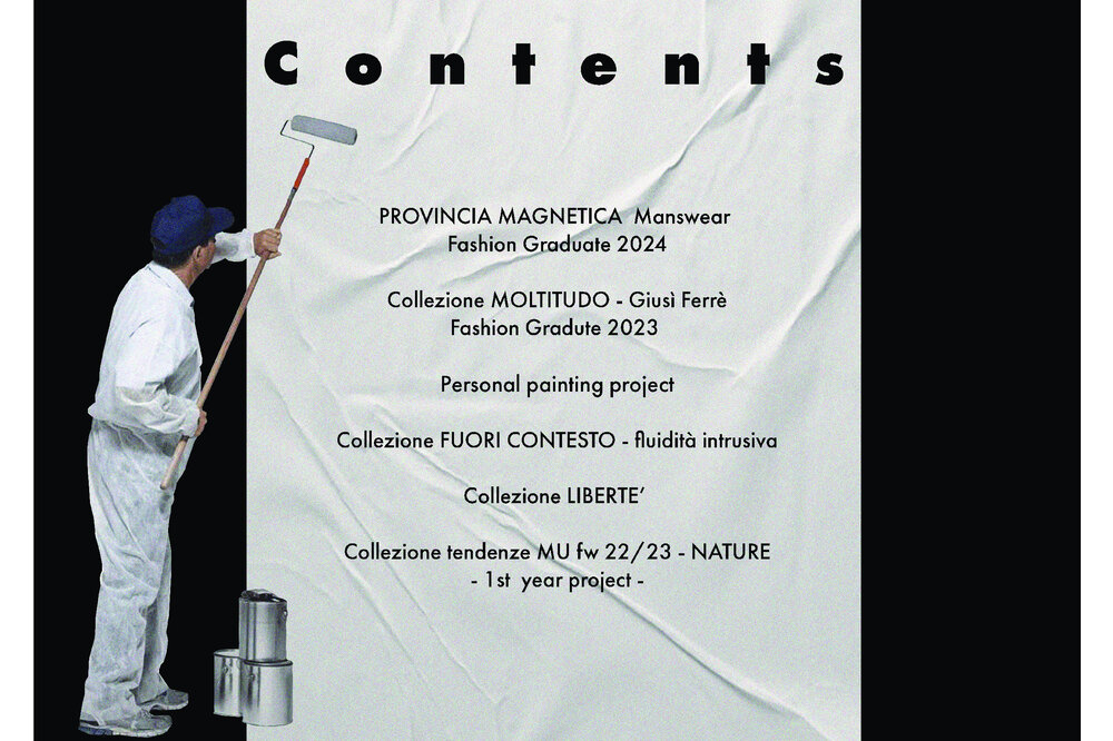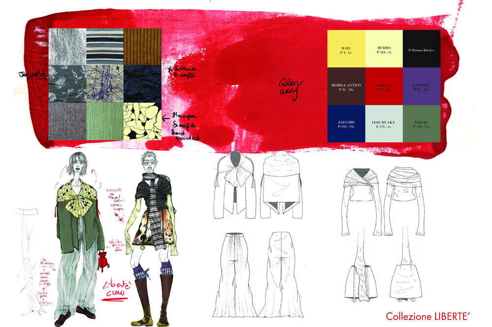 This portfolio contains some of the projects that I have been able to realize during these years of study and work. An attempt to explain and show my creative vision and my way of translating ideas into shape, colors, concepts, fabrics and characters. My creative nature is extremely materic, people and their worlds, experiences, traditions and thoughts are my main and richest source of inspiration for the whole project framework. Of fundamental importance to me is the emotionality that garments must convey to those who look at them and especially to those who wear them. Texturality, shapes, chosen fabrics and colors are necessary for this purpose. Each garment hides potential meanings and emotions that must be able to leave something behind; otherwise the meaning is not there.