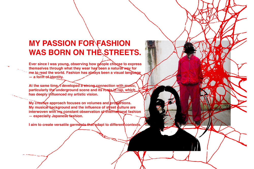 My stylistic roots lie in the street and underground scene. I have deconstructed these elements and blended them with other inspirations, just like a DJ mixes two tracks from different genres to create something unique.